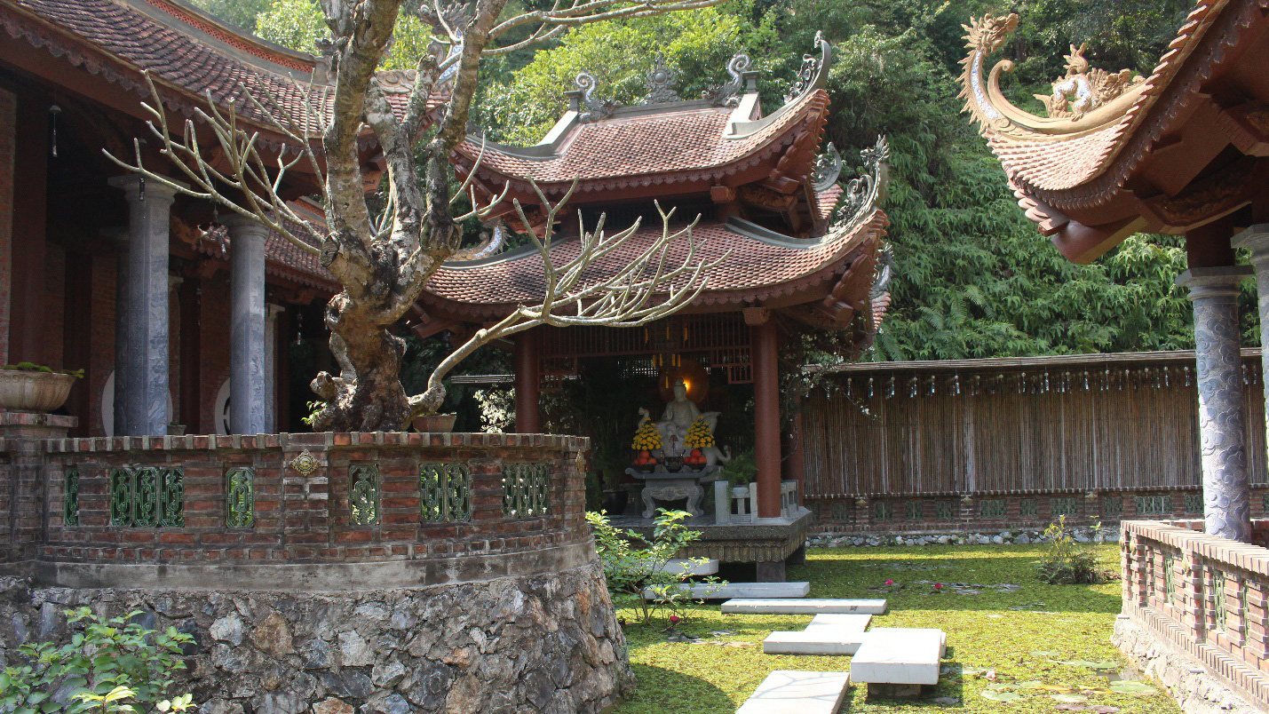 L'emplacement du temple se trouve perché sur une colline, offrant un espace vaste et plat, tandis que le chemin qui y mène est spacieux et accueillant. Après un trajet d'un peu plus d'une heure depuis Hanoï, nous avons atteint ce havre d'architecture exquise et de sérénité au cœur de Ha Nam.