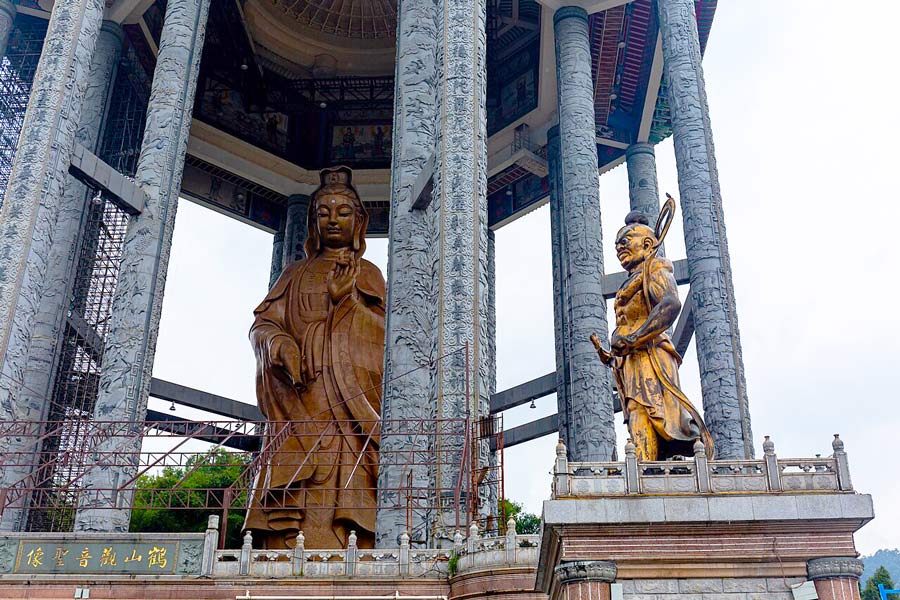 Située sur le plus haut sommet du temple, la statue géante du Avalokiteshvara a été réalisée en 2002 avec du bronze, mesurant plus de 36,5 mètres de haut. La statue est protégée par un comble de 3 étages de style chinois et soutenue par un système de 16 colonnes en bronze. Pour offrir de l'encens et visiter la statue, il faut prendre le téléphérique jusqu'au sommet.