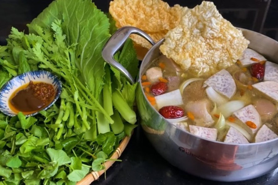 Il s’agit d’une soupe copieuse à base de viande de porc ou de poulet, accompagnée de légumes locaux, de tofu et de nouilles. Le tout est mijoté dans un bouillon savoureux qui est souvent relevé avec des herbes et des épices locales.
