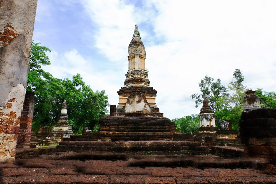 La tradition rapporte que chacun de ces monuments funéraires aurait été érigé en hommage à un membre de la famille royale, ce qui confère au site une dimension à la fois sacrée et historique. L’architecture mêle harmonieusement l’élégance sobre du bouddhisme theravāda et des influences locales, créant un ensemble unique qui reflète l’importance spirituelle et politique de Si Satchanalai dans l’ancien royaume de Sukhothaï.