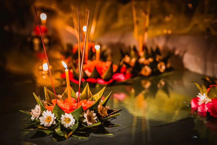 Célébré dans tout le pays, Loy Krathong est un hommage à la déesse de l’eau, Phra Mae Khongkha. Les Thaïlandais confectionnent de petits radeaux en feuilles de bananier, ornés de fleurs, d’encens et de bougies, qu’ils déposent sur les rivières et les lacs. Ce geste délicat représente la purification, la gratitude et la libération des pensées négatives.