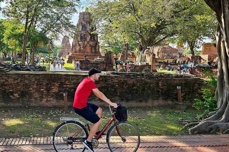 Ayutthaya étant une ville relativement plate, le vélo est un moyen de transport idéal pour visiter les temples et se déplacer entre les différents sites. De nombreux loueurs de vélos sont disponibles à proximité de la gare ou du centre-ville, avec des tarifs très abordables.