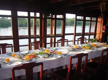 - Repas à bord sont mélanges : Vietnamien, Cambodgien et internationale. Les clients doivent informer des préférences alimentaires spéciales, des allergies ou des besoins alimentaires personnels au moins 3 jours avant la date de croisière.
